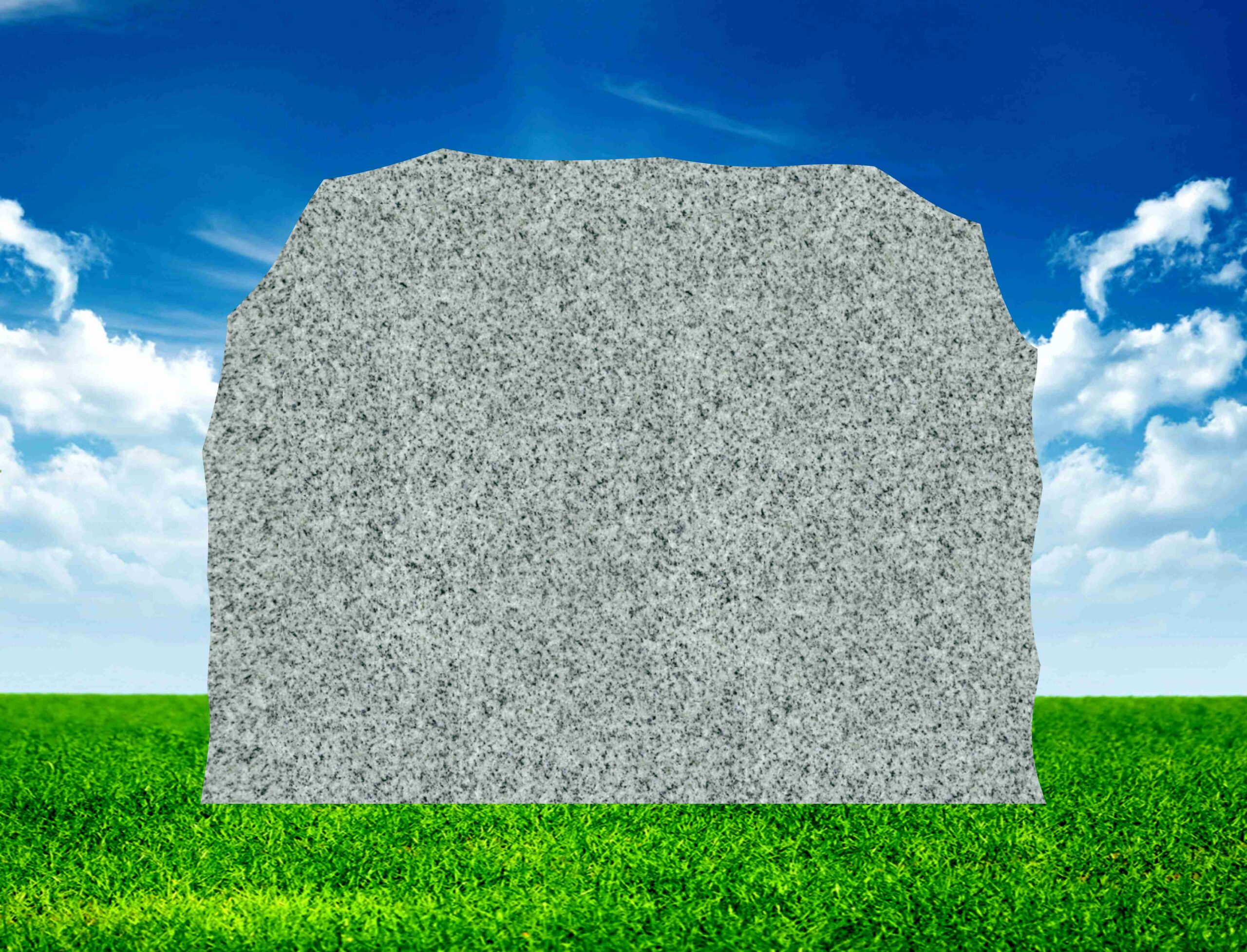 Hauakivi esikülg poleeritud, servad murtud helehallikat tooni, tagumine külg helehall sile sae pind.
